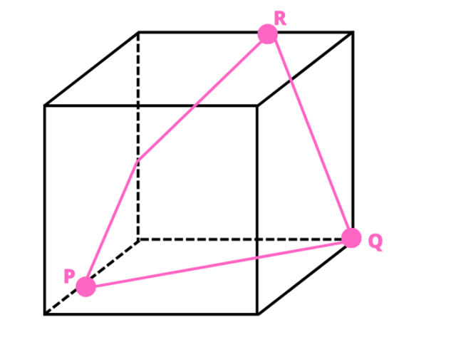 W tym zadaniu musisz skonstruować przekrój sześcianu płaszczyzną (PQR).