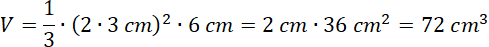 Ostrosłup na rysunku ma H = 6 cm, a połowa krawędzi podstawy to 3 cm. Podstaw:
