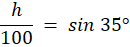 W tym zadaniu wykorzystaj funkcje trygonometryczne. Sinus kąta ostrego to stosunek długości przyprostokątnej leżącej naprzeciwko kąta do długości przeciwprostokątnej.