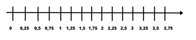 0, 0,25, 0,5, 0,75, 1, 1,25, 1,5, 1,75, 2, 2,25, 2,5, 2,75,3, 3,25, 3,5, 3,75.