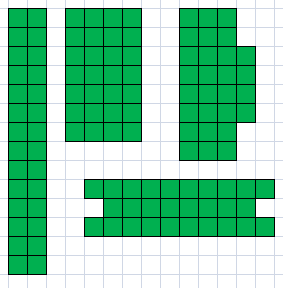 Powstała figura może być dowolna, tak aby była równa powierzchni 28 kwadratów.