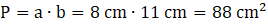Po policzeniu długości drugiego boku i pomnożeniu przez siebie otrzymaliśmy pole o powierzchni 88 cm2.