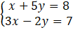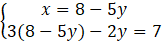 Znajdź pojedynczą niewiadomą, tutaj x i podstaw do drugiego równania.