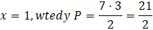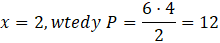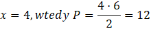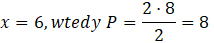 Oblicz pole trójkąta dla x: 1, 2, 4, 6.