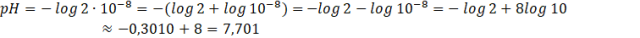 podstaw dane. Powstanie wyrażenie z logarytmem. Należy potraktować minus przed logarytmem jako