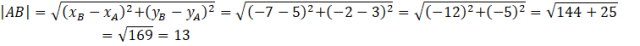 W tym zadaniu musisz wyliczyć odległość od punktu A = (5, -2) do punktu B = (-7, 3).