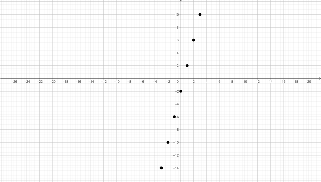 | f(x) | -14 | -10 | -6 | -2 | 2 | 6 | 10 |