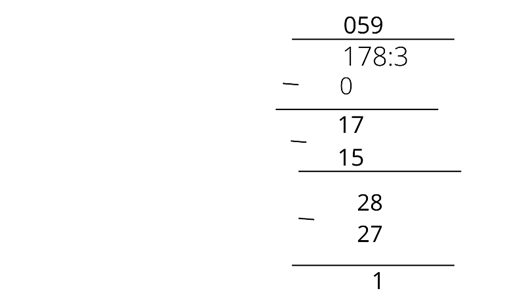 Sprawdzamy, ile 3 mieści się w 1, ani jedna, a więc zapisujemy nad kreską 0 i mnożymy 0 razy 3. Wykonujemy odejmowanie. Zostaje nam liczba 1 i przepisujemy 7 zapisaną powyżej, i teraz zastanawiamy się, ile 3 mieści się w 17. Robimy tak z każdą liczbą po kolei. Jeśli zrobimy tak, z wszystkimi liczbami a na dole pozostanie nam cyfra inna niż 0, to oznacza, że jest to reszta z dzielenia.