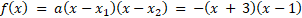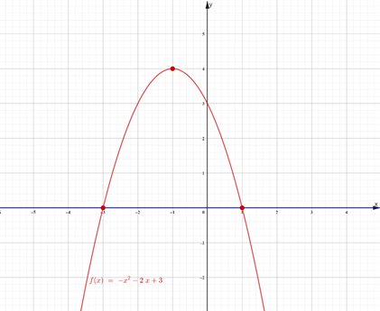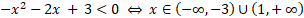 Odczytaj rozwiązanie nierówności kwadratowej –x2 – 2x + 3 < 0, z wykresu funkcji f(x) = –x2 – 2x + 3.