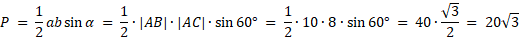 Skorzystaj ze wzoru na pole trójkąta