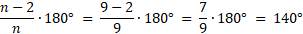 Wyznacz miarę kąta wewnętrznego dziewięciokąta foremnego.