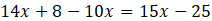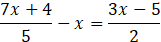 Pomnóż całe równanie przez 10, by pozbyć się ułamków. Następnie rozwiń wszystkie nawiasy i pozostaw wyrazy z x po lewej stronie, a całą resztę – po prawej.