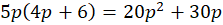 W tym zadaniu przedstaw wyrażenie 5p(4p + 6) za pomocą sumy algebraicznej.