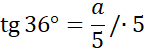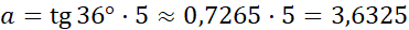 Tangensem kąta α nazywamy stosunek długości przyprostokątnej leżącej naprzeciw kąta α do długości drugiej przyprostokątnej. Odczytaj wartość tg 36˚ z tabeli.