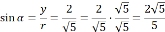 Sinusem kąta α nazywamy stosunek rzędnej punktu P (drugiej współrzędnej) do odległości tego punktu