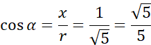 Cosinusem kąta α nazywamy stosunek odciętej punktu P (pierwszej współrzędnej) do odległości tego punktu