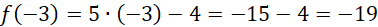 Aby uzupełnić pierwszą kolumnę podstaw -3 za x do wzoru funkcji f(x) = 5x – 4