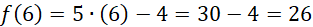 Aby uzupełnić drugą kolumnę podstaw 6 za x do wzoru funkcji f(x) = 5x – 4