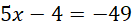 Aby uzupełnić trzecią kolumnę, musisz obliczyć, dla jakiego x funkcja f(x) = 5x – 4 przyjmuje wartość -49
