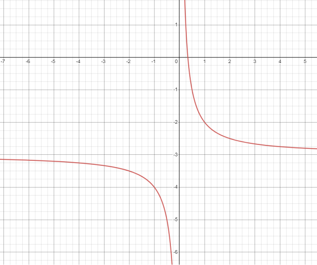 Wyznacz wzór, dziedzinę, zbiór wartości oraz równania asymptot funkcji g, która powstała po przesunięciu wykresu funkcji