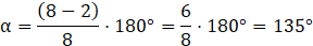 Wylicz, ile mierzy kąt wewnętrzny ośmiokąta foremnego.
