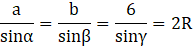 Stosunki długości boków do sinusów przeciwległych kątów w dowolnym trójkącie, są równe średnicy okręgu opisanego na tym trójkącie.