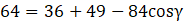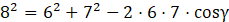 Dla dowolnego trójkąta kwadrat jednego z boków jest równy sumie kwadratów dwóch pozostałych odjąć podwojony iloczyn długości tych boków oraz cosinusa kąta między nimi.