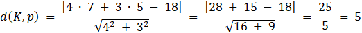 W tym zadaniu musisz wyznaczyć odległość punktu K od prostej p, korzystając z odpowiedniego wzoru.