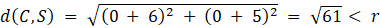W tym zadaniu musisz sprawdzić, czy odległość podanych punktów od środka kołom jest mniejsza bądź równa długości promienia tego koła.