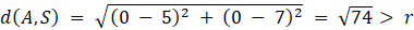 Nierówność koła o środku w punkcie S i promieniu r to: