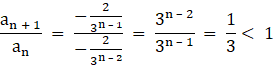 Iloraz dwóch kolejnych wyrazów tego ciągu jest stały, zatem jest to ciąg geometryczny. Iloraz ten jest większy od zera i mniejszy od 1, zatem jest to ciąg malejący.