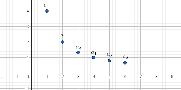 W tym zadaniu musisz obliczyć kilka początkowych wyrazów podanego ciągu, zaznaczyć je w układzie współrzędnych i na podstawie rysunku określić granicę tego ciągu.