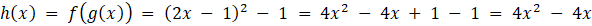 W tym zadaniu musisz wyznaczyć wzór funkcji h określonej jako złożenie funkcji f i g, a następnie znaleźć jej dziedzinę.