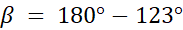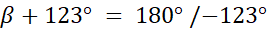 Kąt β i 123º to kąty przyległe. Suma ich miar to 180º