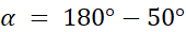 Kąt α i 50º to kąty przyległe. Suma ich miar to 180º.