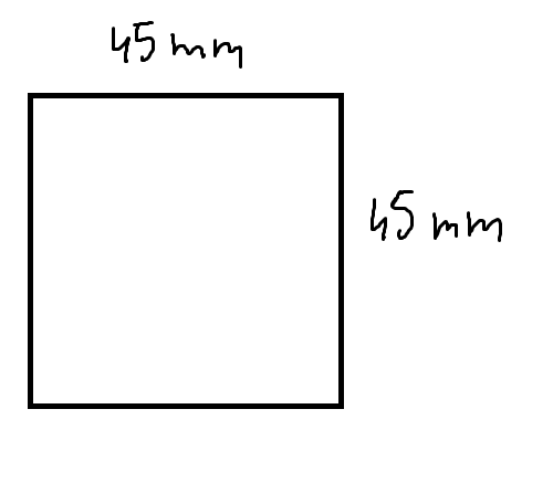 Każdy z boków ma 45 mm długości, czyli 4,5 cm.