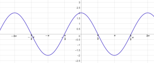 Liczba 2 przed wzorem sprawia, że zbiorem wartości rozpatrywanej funkcji jest przedział: ⟨-2; 2⟩.