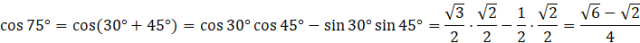 Mając dane cos 75° oraz wzory funkcji trygonometrycznych na sumę i różnicę ich kątów, wyznacz podaną liczbę.