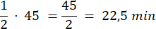 Godzina lekcyjna trwa 45 minut, dlatego aby obliczyć, ile wynosi jej połowa, trzeba pomnożyć wartość godziny lekcyjnej razy
