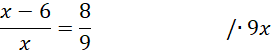 W tym zadaniu musisz utworzyć równanie spełniające warunki: mama Bartka jest o 6 lat młodsza od jego taty. Stosunek wieku i taty jest jak 8 do 9. Następnie wskaż wiek mamy i taty Bartka.