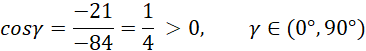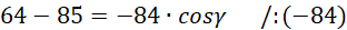 Określ miarę kąta α na podstawie otrzymanej wartości cosinusa.
