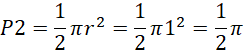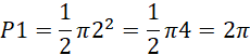 Odejmując dwa takie pola od pola figury P1 otrzymasz pole zacieniowanej figury. Skorzystaj ze wzoru na pole koła: