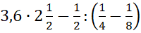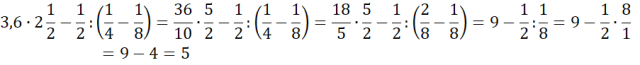 Każdą z liczb przedstaw w postaci ułamka niewłaściwego. Ułamki w nawiasie rozszerz do wspólnego mianownika i oblicz ich różnicę. Dzielenie ułamków zamień na mnożenie przez odwrotność drugiego z nich. Skróć iloczyny na skos i oblicz ostateczny wynik.
