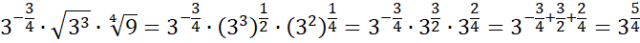 Wszystkie liczby podane w treści zadania zapisz za pomocą potęgi liczby 3. Skorzystaj z tego, że pierwiastek można zapisać za pomocą potęgi: