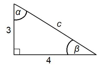 Wyznacz wartości funkcji trygonometrycznych dla kątów ostrych trójkąta prostokątnego, którego przyprostokątne mają długości 3 i 4.