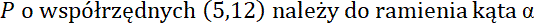 1. Narysuj układ współrzędnych i oznacz punkt P(5,12) na wykresie.