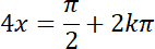 Aby rozwiązać równanie, zacznij od wyznaczenia zbioru argumentów, dla jakich sinus przyjmuje wartość 1. Następnie przyrównaj wynik do argumentu sinusa: 4x. Z otrzymanego równania wyznacz x.