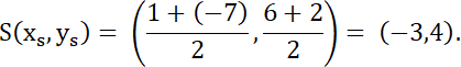 1. Oblicz współrzędne punktu S, środka odcinka AB: