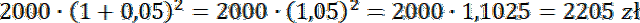 Oblicz kapitał, który znajdzie się po 2 latach na koncie oprocentowanym na 5% w skali roku, jeśli zostanie na niego wpłacone 2000 zł.