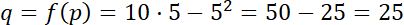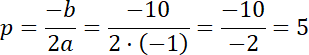 Współrzędne wierzchołka paraboli to: W = (5,25).